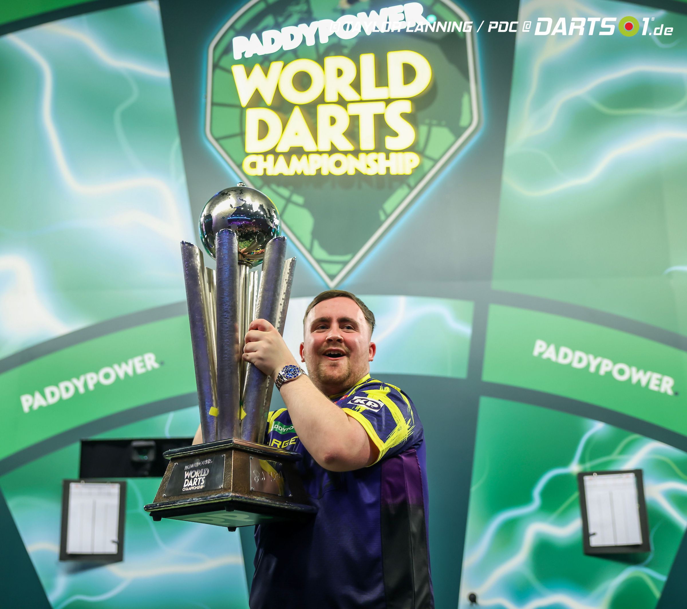 ▶ Luke Littler besiegte Gian van Veen mit 7:1 Sätzen und holte den Titel zum zweiten Mal hintereinander.